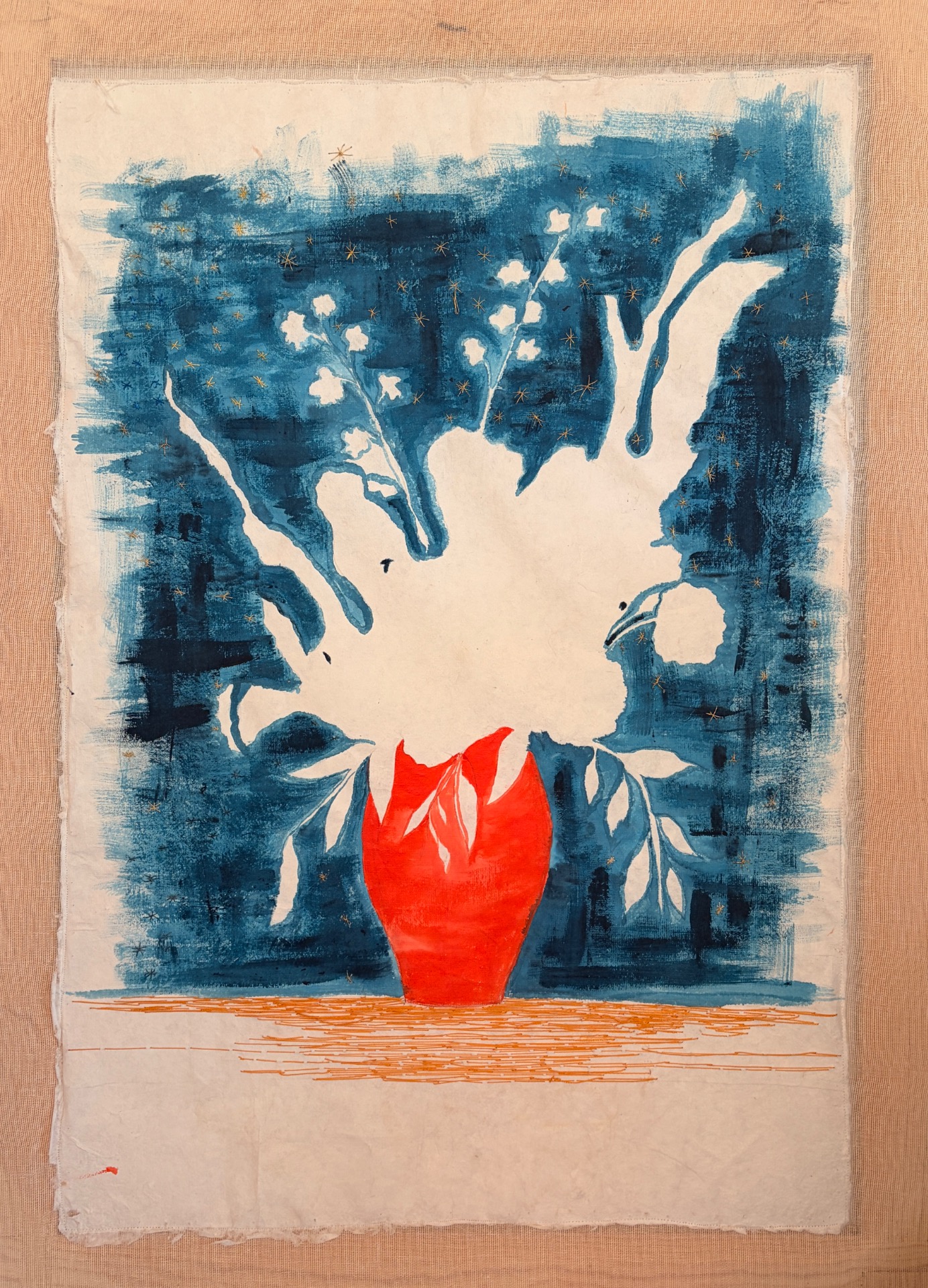 En el año 2017, comienza a bordar papeles japoneses, a mano, con seda y algodón. Aquí está destilado gran parte del trabajo que ha hecho hasta ahora. El papel, al igual que la tela, son materiales cotidianos, insustituibles, y la interacción con ellos permite explorar y transmitir lo que quiere plasmar en sus obras.