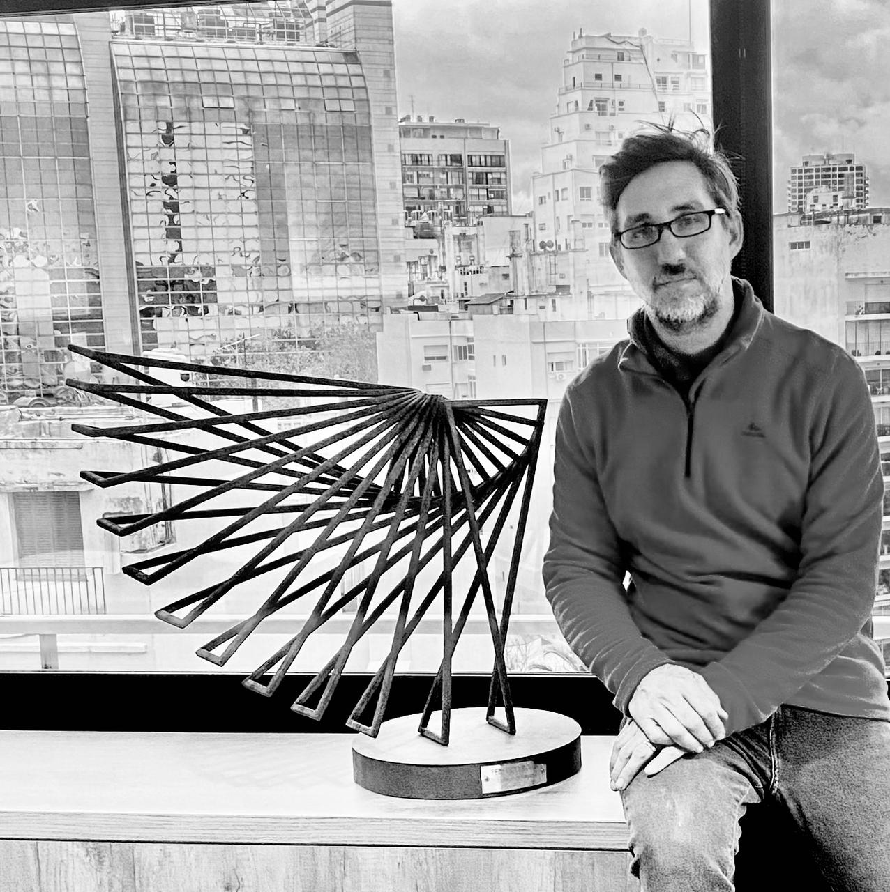 A través de una búsqueda de tensegridad compacta y dinámica, Federico logra transformar secuencias de ángulos y rectas en un despliegue de curvas y paraboloides cargados de ritmo. En su proceso creativo, el eje fundamental es el vínculo directo entre su capacidad psicomotriz y la universalidad de la forma, la cual se manifiesta de manera orgánica durante la ejecución de cada pieza.