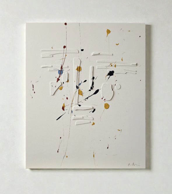mientras que la aplicación de capas espesas y relieves definidos subraya la dimensión objetual de la obra.