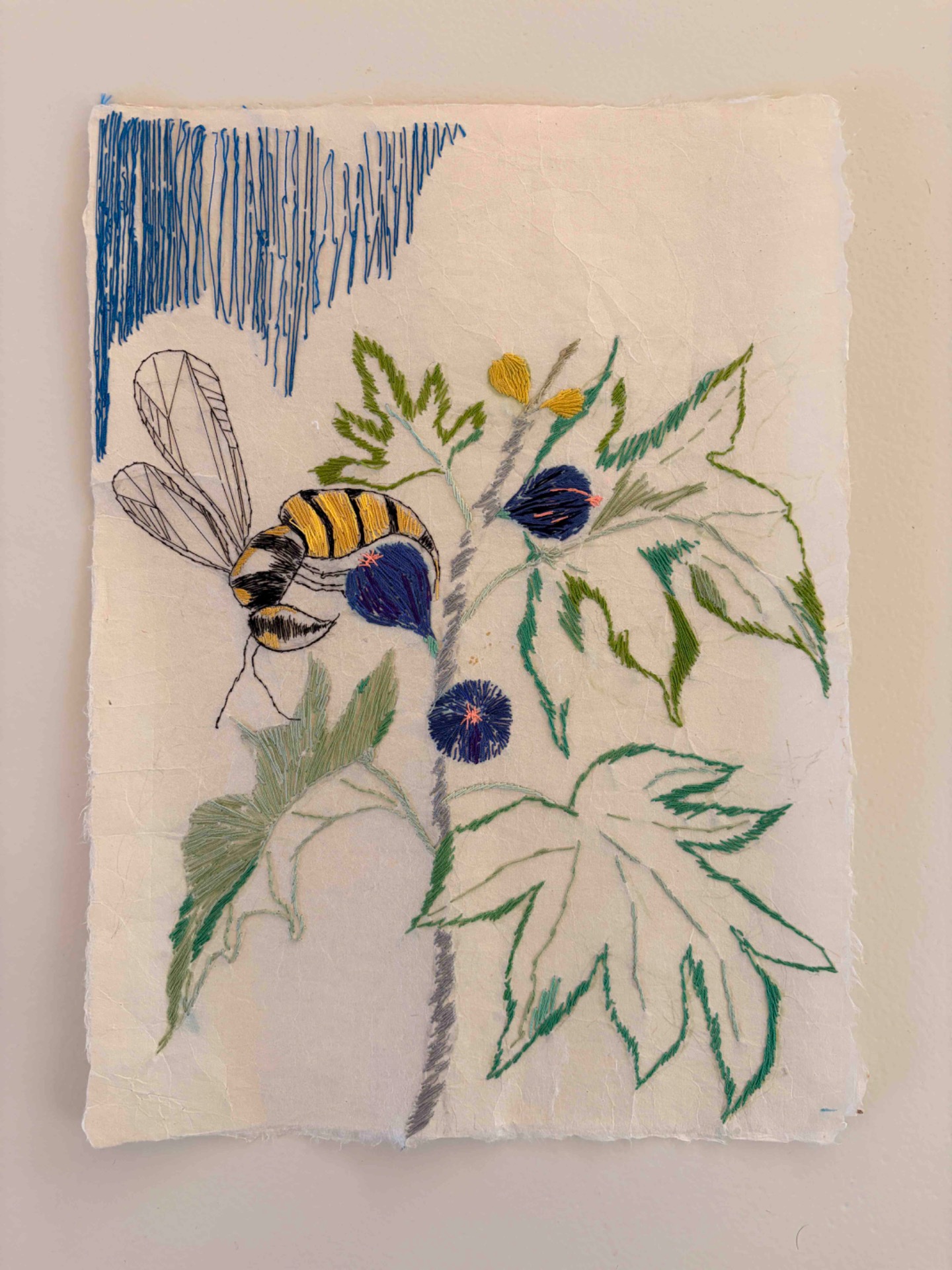 Hilos de seda y algodón bordado sobre papel japonés