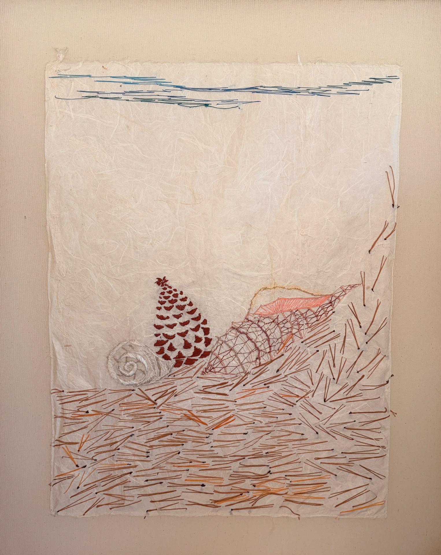 Hilos de seda y algodón bordado sobre papel japonés